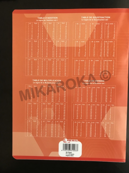 Tableau contenant les tables d'addition, de soustraction, de multiplication et de division.