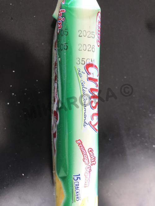 Crackers savoureux au goût fromage oignon, parfaits pour les apéritifs.