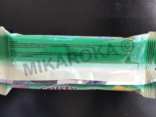 Farine de blé, matière grasse végétale, sucre, extrait de malt, sel, poudre à lever, bicarbonate de sodium (E500), pyrophosphate de sodium (E450), émulsifiant : lécithine de soja (E322), épices et condiments, présence probable de gluten, traces de fruits à coque.