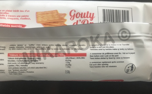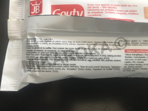 Farine de blé, sucre, huile de palme, eau, sel, émulsifiant : lécithine de soja, arôme.