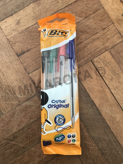 Lot de 4 stylos Bic Cristal Original de couleur bleu, noir, vert et rouge. Parfaits pour une écriture fluide et précise.