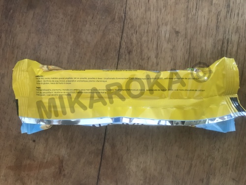 Farine de blé, sucre, matière grasse végétale, lait en poudre, poudres à lever : bicarbonate d'ammonium (E503), bicarbonate de sodium (E500), acide mono phosphate de calcium (E341), sel, émulsifiant : lécithine de soja (E322), préparation aromatique, prémix vitaminique.