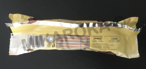 15 biscuits Nitrivit saveur chocolat Biscuits enrichis en Fer, vitamines A, B1, B2 et calcium Produit par UNIBISC Pays d'origine: Madagascar